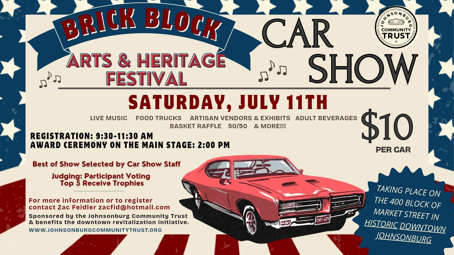 The Johnsonburg Community Trust (JCT) is excited to announce the return of our two-day Brick Block Arts & Heritage Festival, a lively celebration of Johnsonburg's unique culture and proud history in the heart of historic downtown Johnsonburg. ❤️ This year's theme, "America 250," honors our country's 250th birthday with special programming and festive events. As always, the festival is scheduled to coincide with the Johnsonburg Chamber of Commerce's Annual Alumni & Friends Weekend, so you can expect an increase in foot traffic and community energy. 🐏💛💙